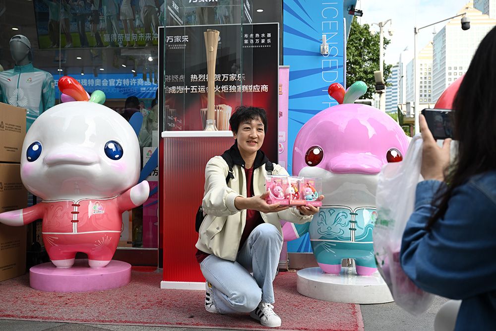 在广州、深圳等地,以中华白海豚为原型的吉祥物“喜洋洋”“乐融融”一“豚”难求。据悉,十五运会推出超2800款特许商品,超30款热门商品基本售罄。