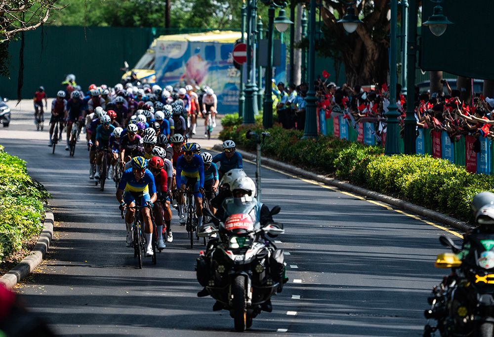 11月8日,十五运会公路自行车男子个人赛举行,这是本届全运会唯一一项跨越粤港澳三地的比赛项目。图为选手们途经位于香港迪士尼乐园度假区幻想道的赛道。(图/中新社)