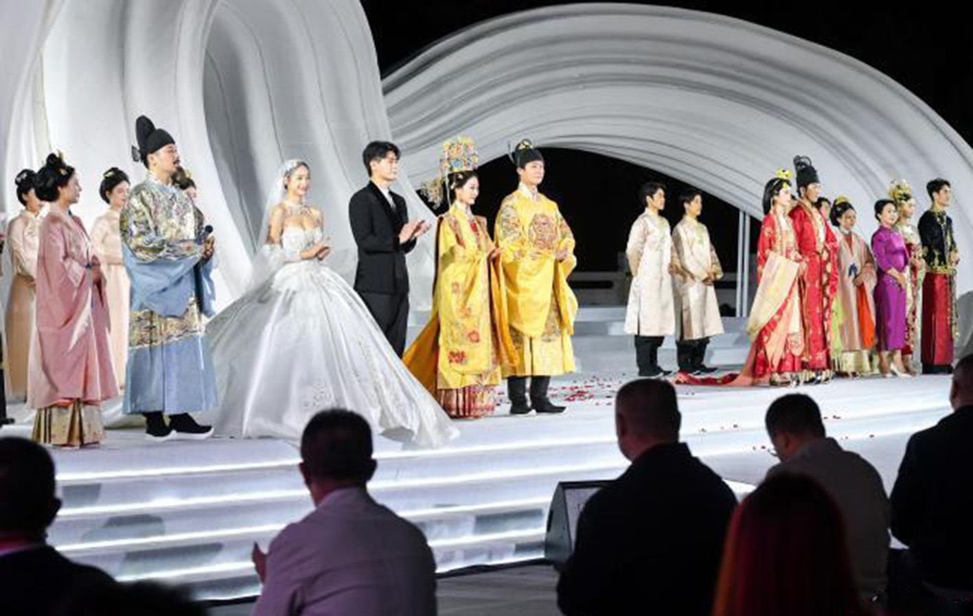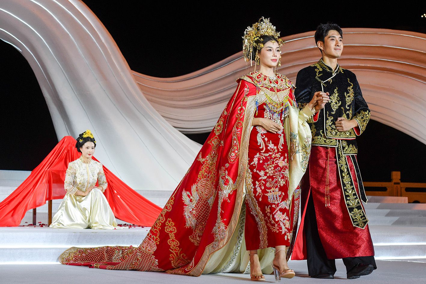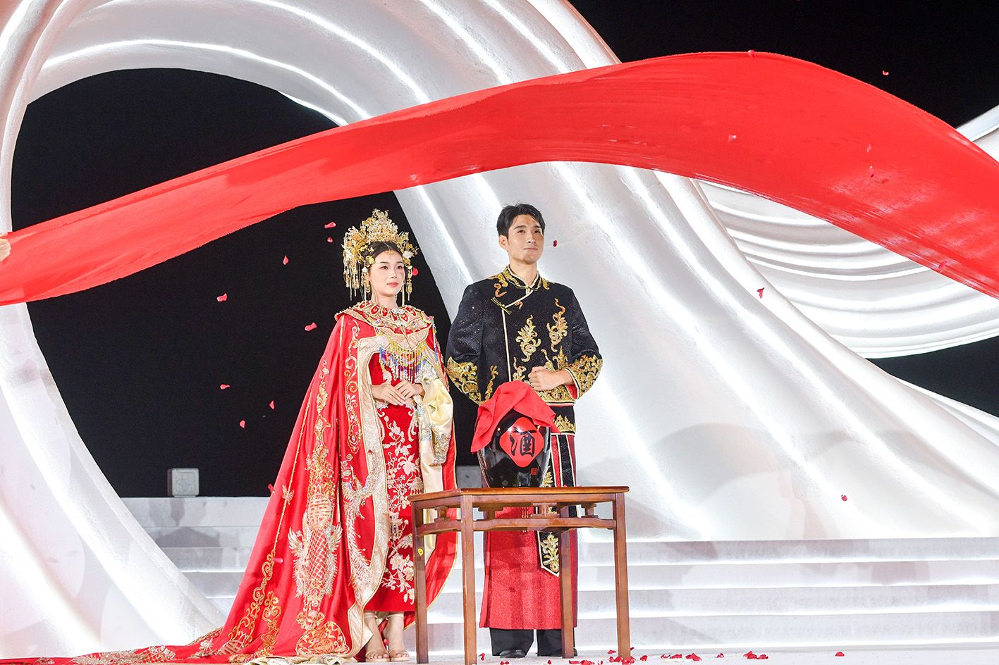演出以时间为脉络,依次呈现唐代婚俗秀、明代婚俗秀、新中式婚俗秀与西式婚俗秀四个篇章,穿插主题舞蹈与情景演绎,生动展现不同时代、不同风格的婚俗文化演变。(中国日报网)