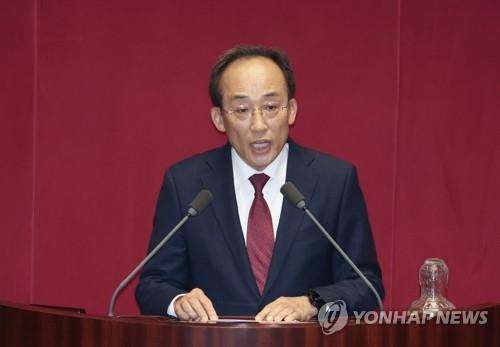 11月27日,在国会,秋庆镐出席全会并发言。韩联社