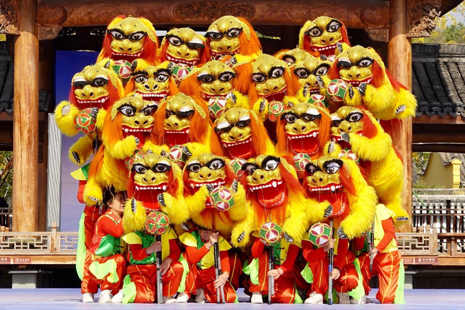 11月27日,演员表演拱瑞手狮。当日,2025金华山黄大仙文化节非遗庙会在浙江金华启幕,特色集市、非遗展演等集中亮相,展现当地文化历史和古婺风情。(图/中新社)