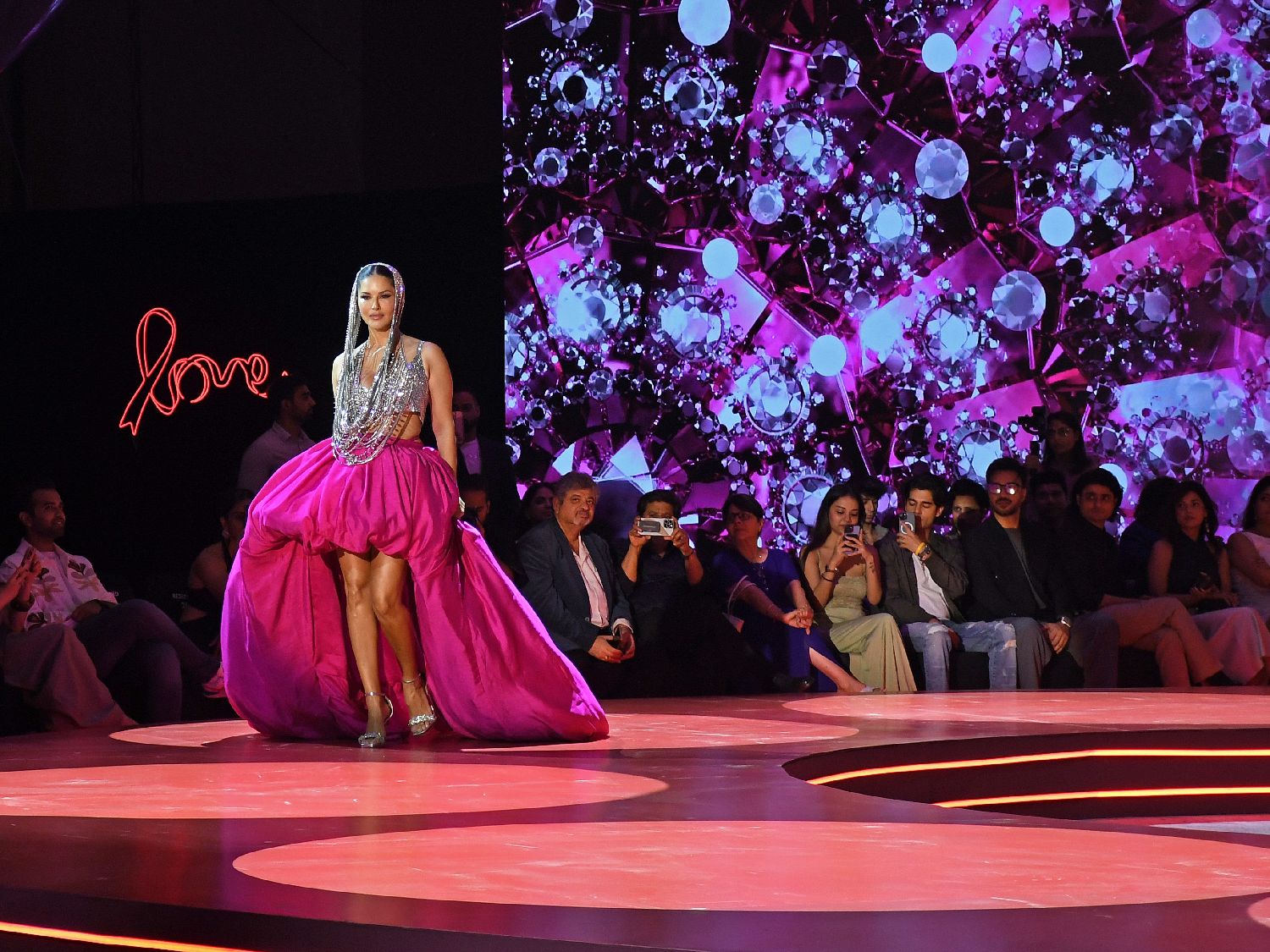 图为11月29日,印度马哈拉施特拉邦孟买,印度女演员桑尼·莱昂在孟买参加由时装设计师阿什利·雷贝洛(Ashley Rebello)以“爱”为主题的“世界艾滋病日”纪念时装秀。作为世界艾滋病日纪念活动的一部分,这场时装秀旨在倡导亲密关系、自我表达、身体自爱、安全选择,并打破围绕艾滋病毒和性健康的污名。(CFP)