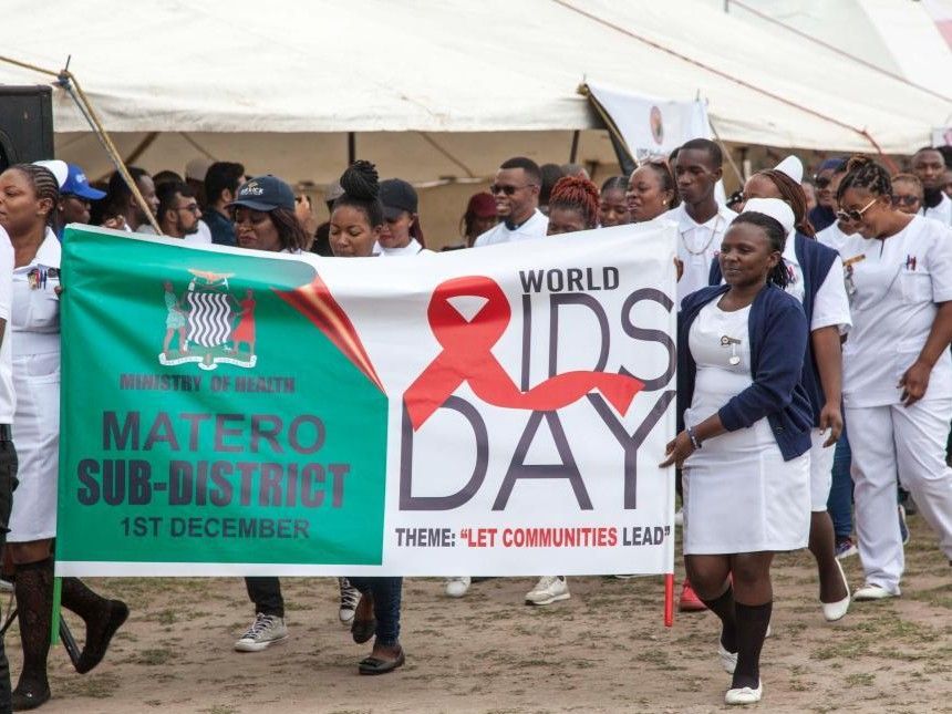 图为12月1日,医务工作者在赞比亚首都卢萨卡参加世界艾滋病日宣传活动。(新华社)