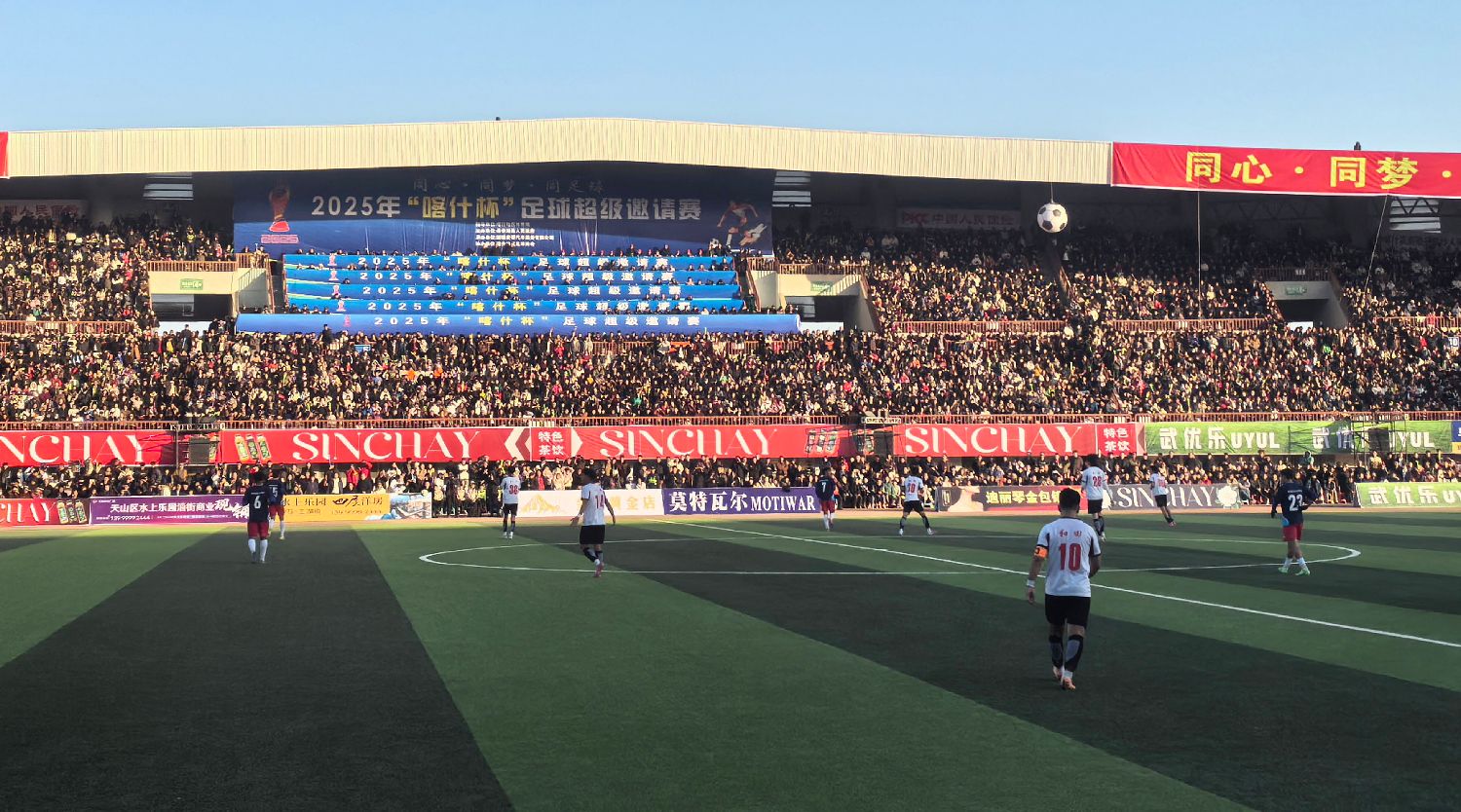 2025年“喀什杯”足球超级邀请赛(简称“喀什杯”)正在岳普湖县举办。连日来,能容纳约1.7万名观众的体育场几乎座无虚席,看台上男女老幼的呐喊声此起彼伏。40岁的岳普湖县业余足球选手凯赛尔·塔依尔说:“在这里,足球就是最受欢迎的运动。”