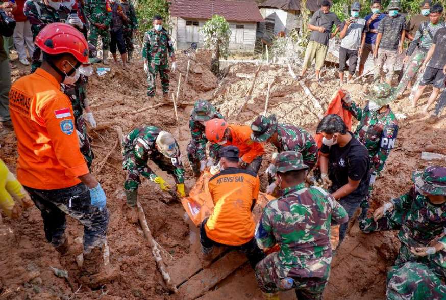 图为救援人员12月1日在印度尼西亚北苏门答腊省的北打巴努里地区开展搜救。(图/新华社)