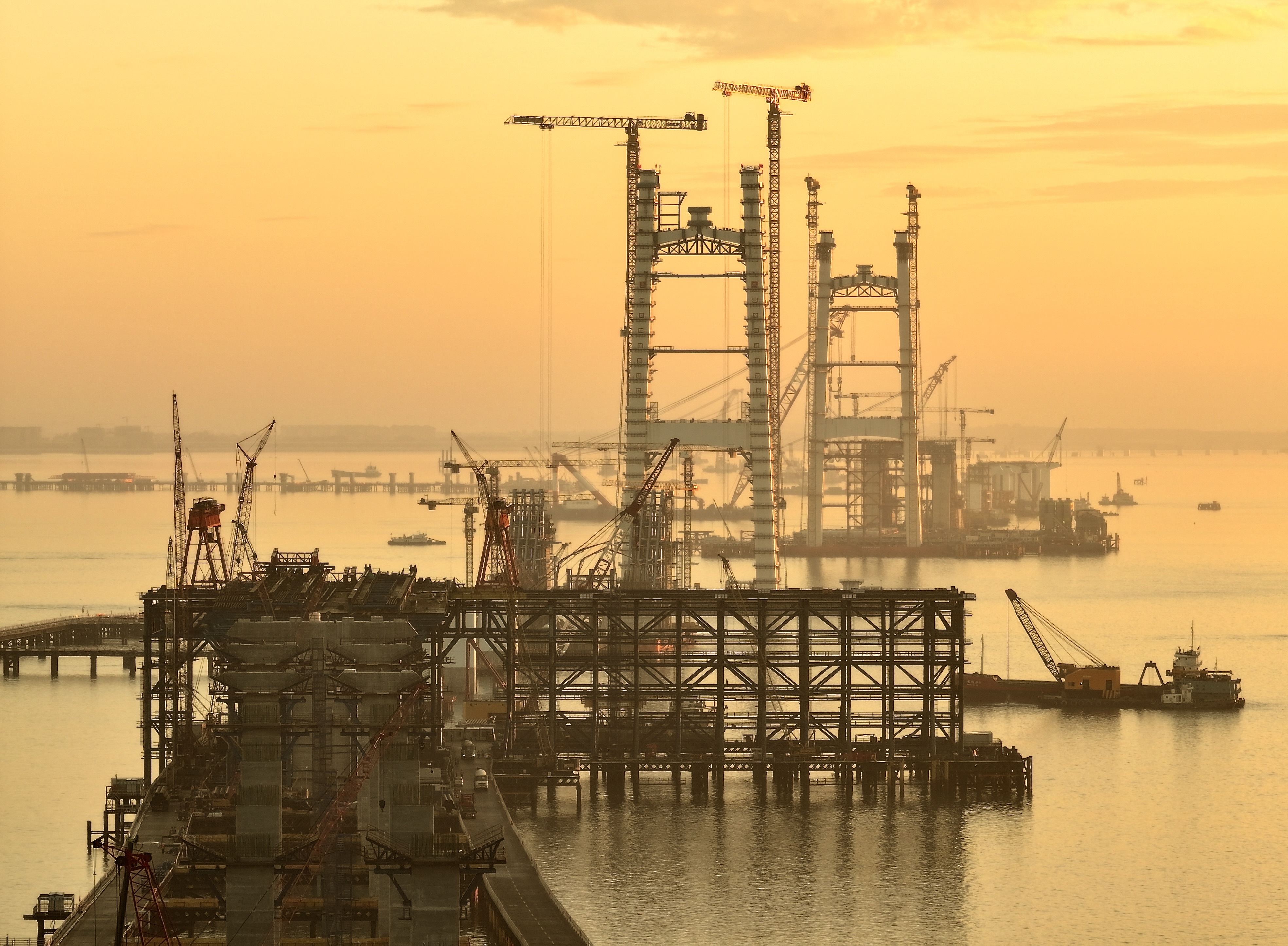 图为厦金大桥清晨海上施工场景。(《厦门日报》)
