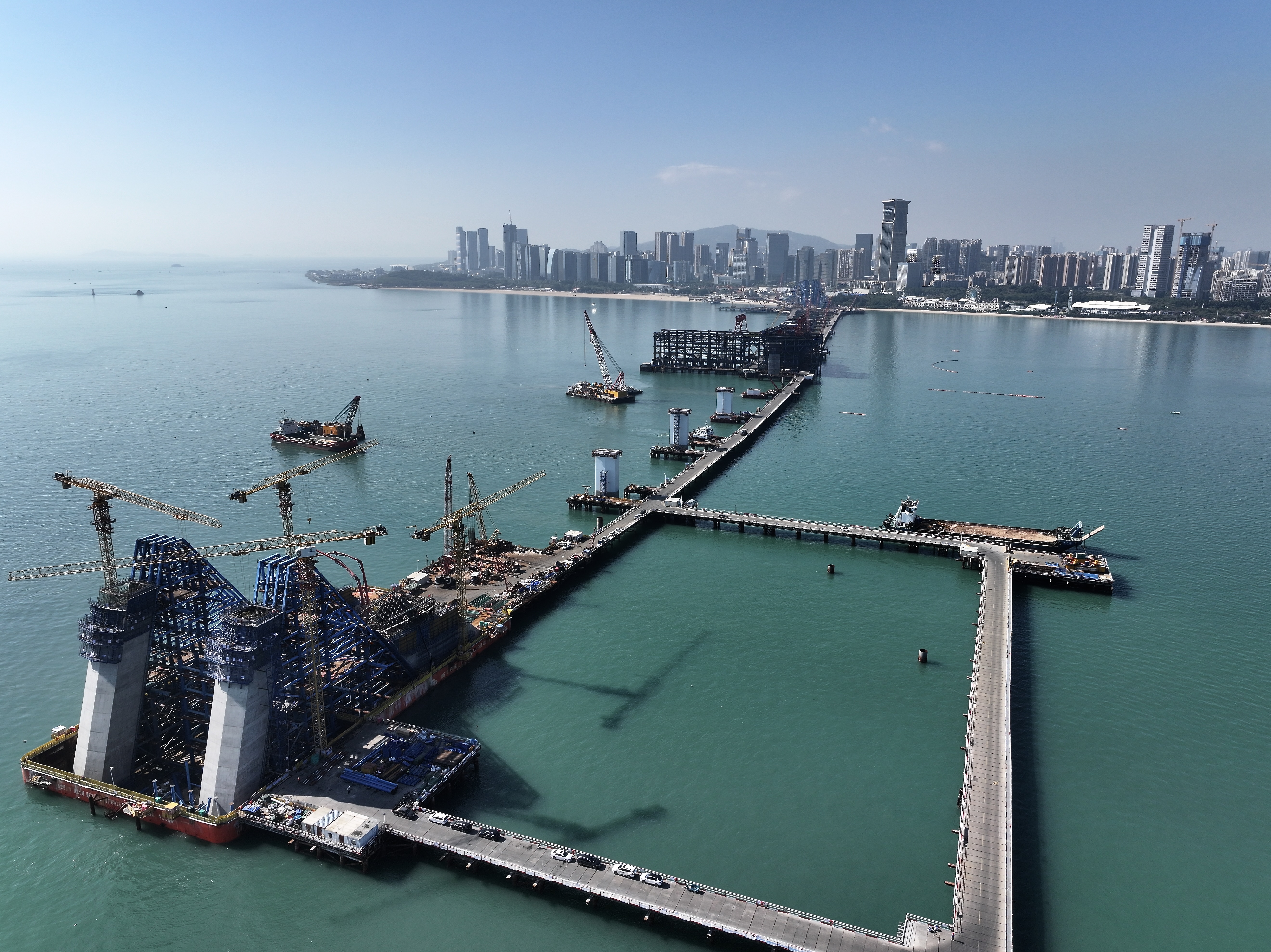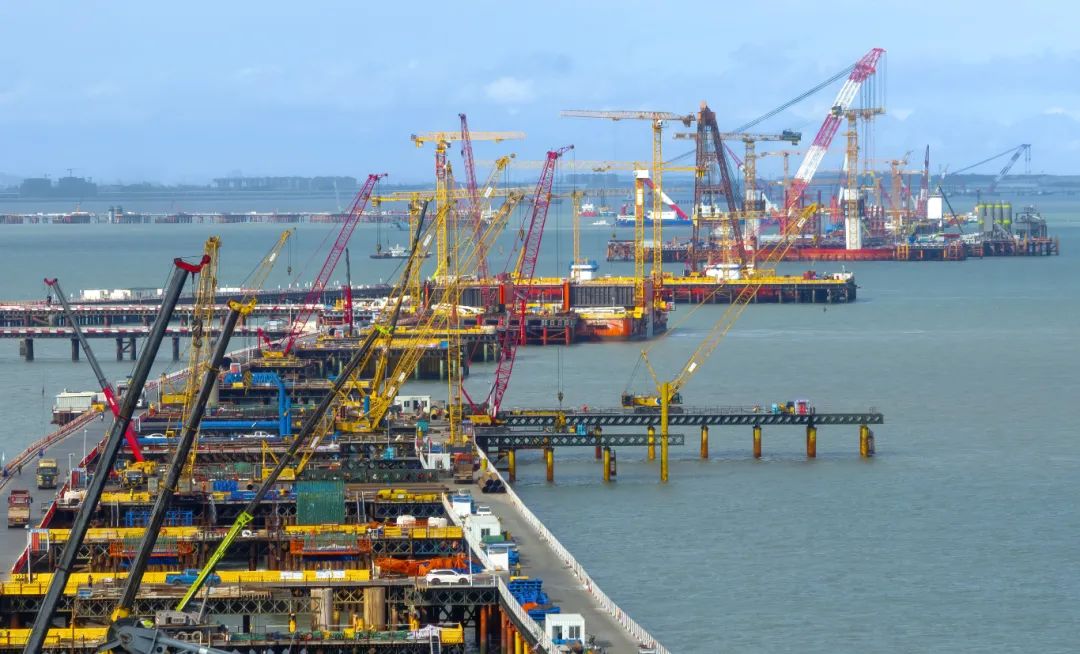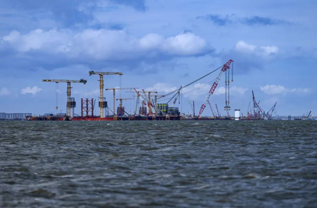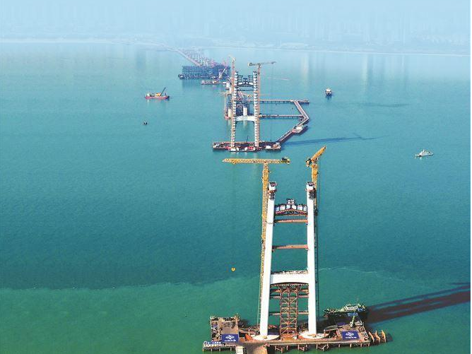 图为厦金大桥(厦门段)海上施工现场。(新华社)