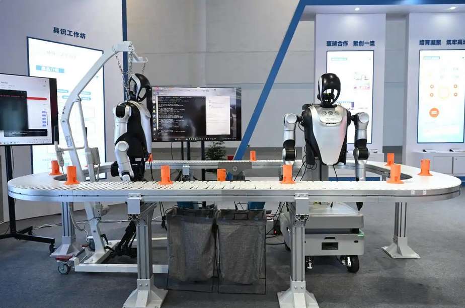 12月1日,“侨智汇”成果发布区拍摄的自动分拣机器人。(图/新华社)