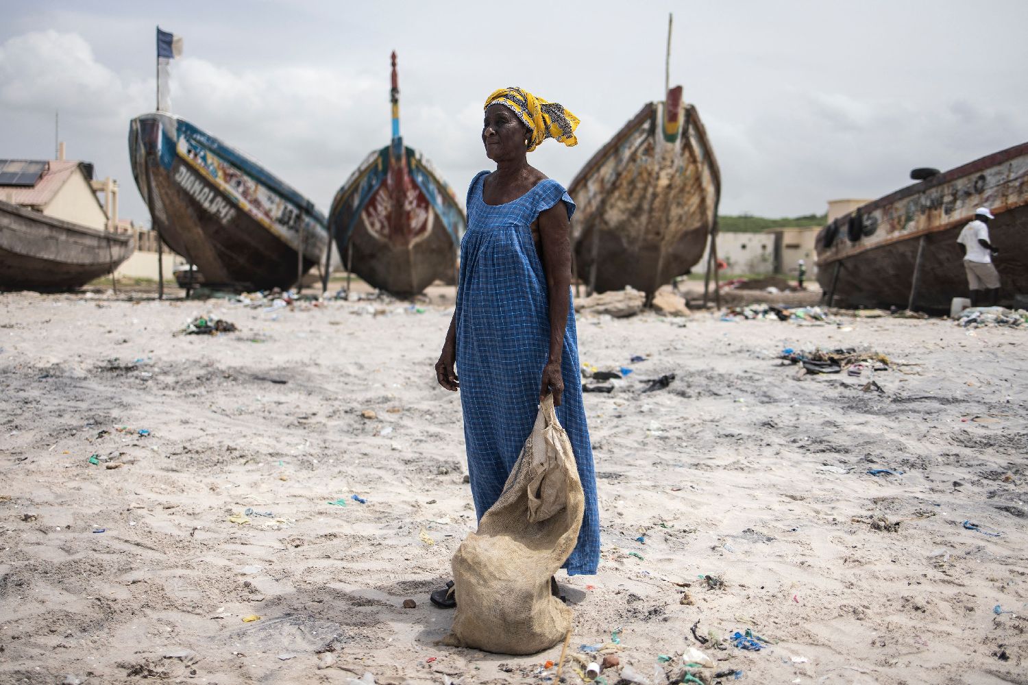 资料图为塞内加尔,志愿者沿着海岸线收集垃圾。(CFP)