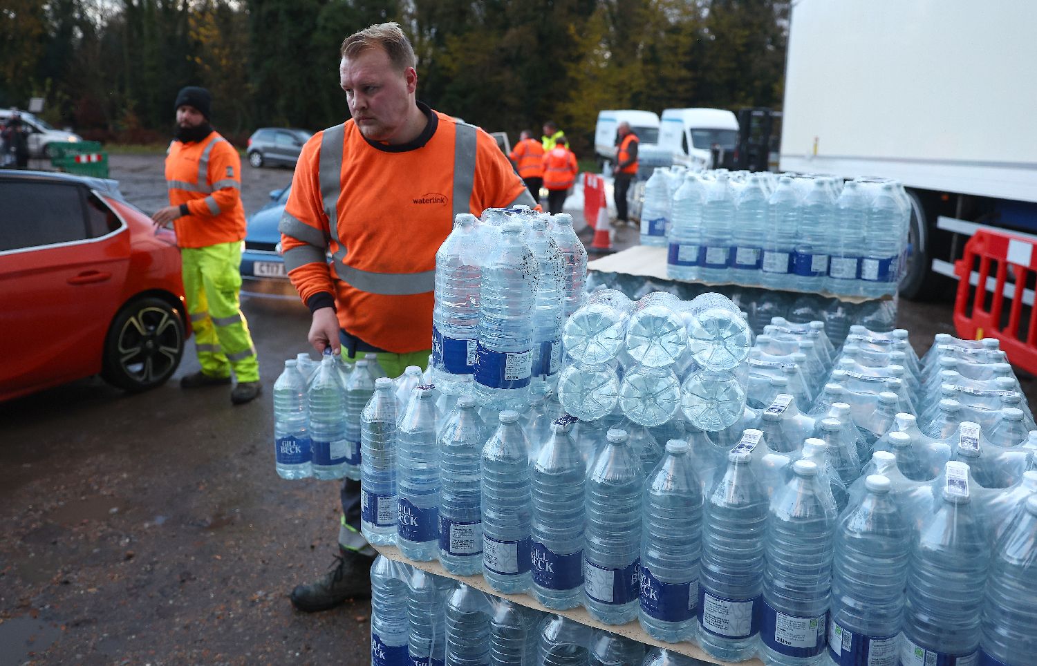 资料图为英国坦布里奇韦尔斯,坦布里奇韦尔斯、彭伯里、弗兰特和埃里奇停水期间,志愿者在一个分发点帮助民众将瓶装水装载到车辆上。(CFP)