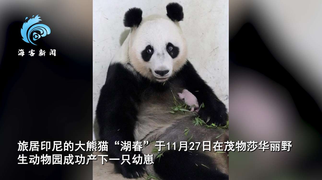旅印尼大熊猫“湖春”诞下首只幼崽。(图/北京海客新闻视频截图)