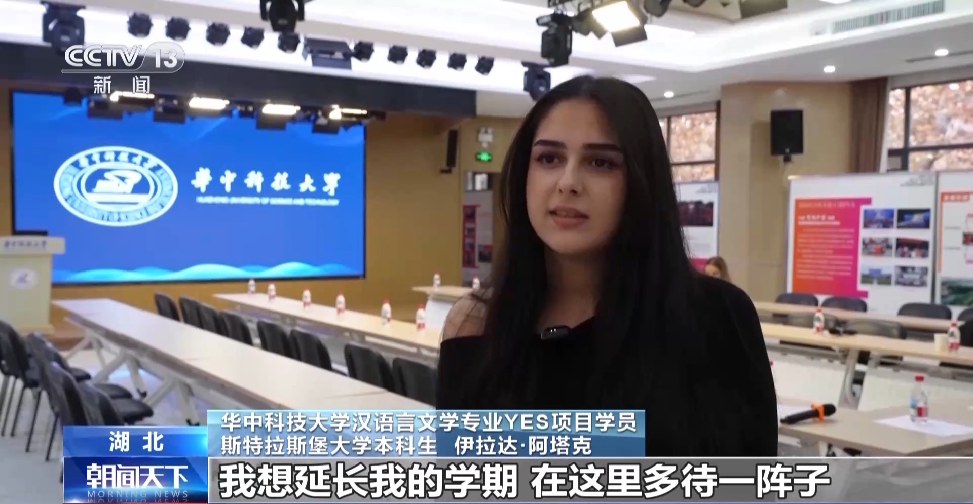 华中科技大学汉语言文学专业YES项目学员斯特拉斯堡大学本科生伊拉达·阿塔克:我想延长我的学期,在这里多待一阵子,因为我感觉这座校园就是为学生而建的,让我们在学习的同时有好的体验。