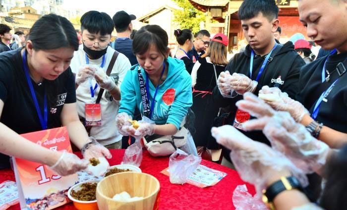 12月7日,“中国小吃之乡”福建沙县在一片烟火气中迎来小吃旅游文化节。国际小吃创意大赛、小吃技艺千人体验等活动同步举行,吸引众多台胞参与制作、交流。