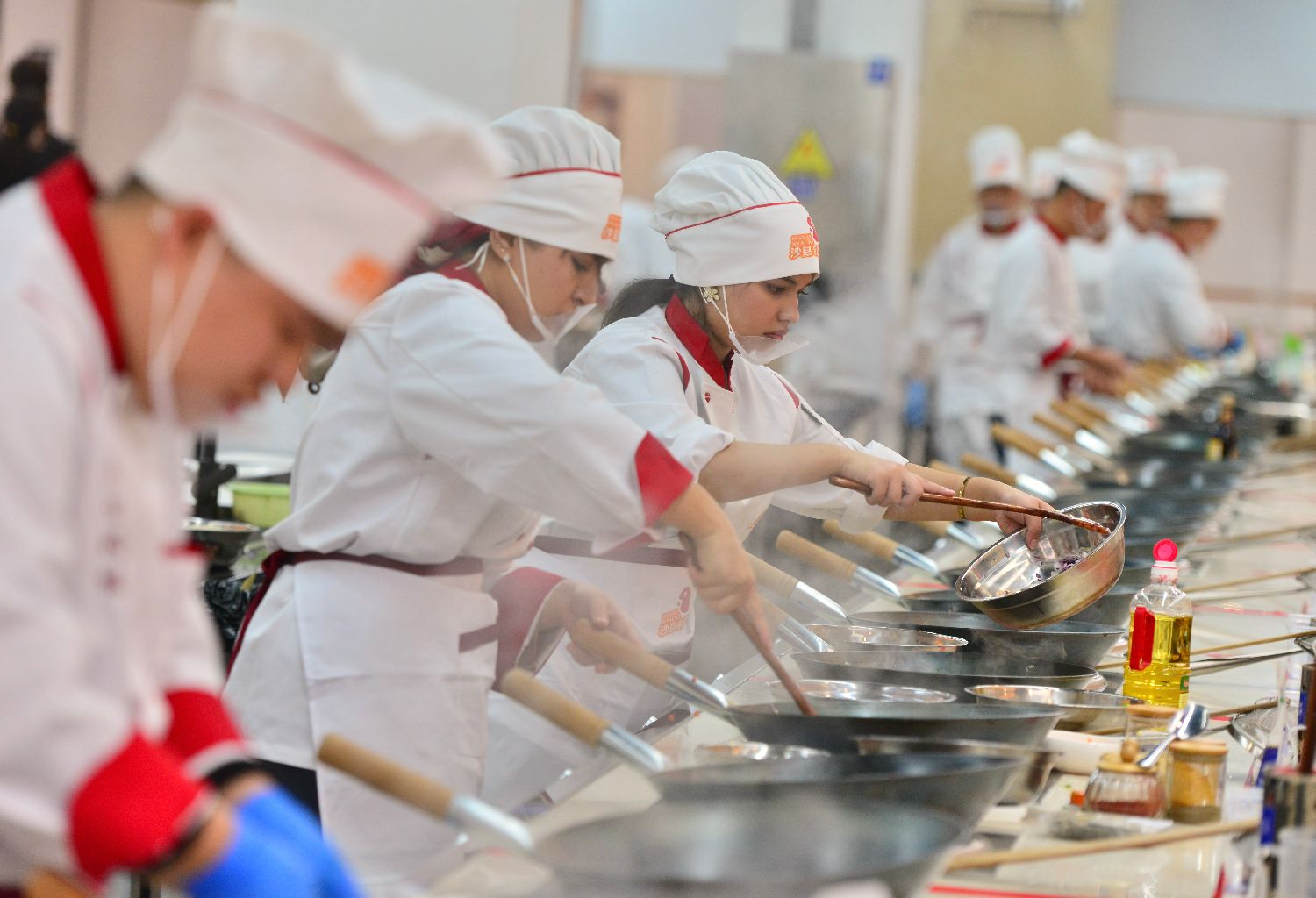 12月6日,2025“食尚两岸·香聚沙县”海峡两岸厨艺交流赛上的参赛队员在烹饪菜品中。(中新社)