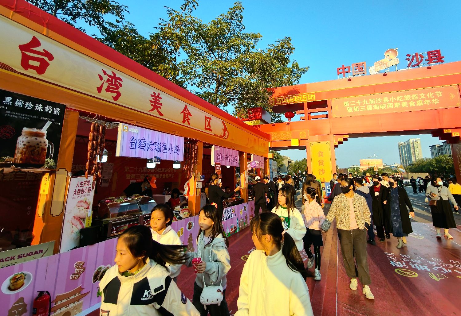 12月6日,以“食赏沙县 味你而来”为主题的第二十九届沙县小吃旅游文化节暨第三届海峡两岸美食嘉年华活动上,台湾美食区吸引民众前来购买品尝。(中新社)