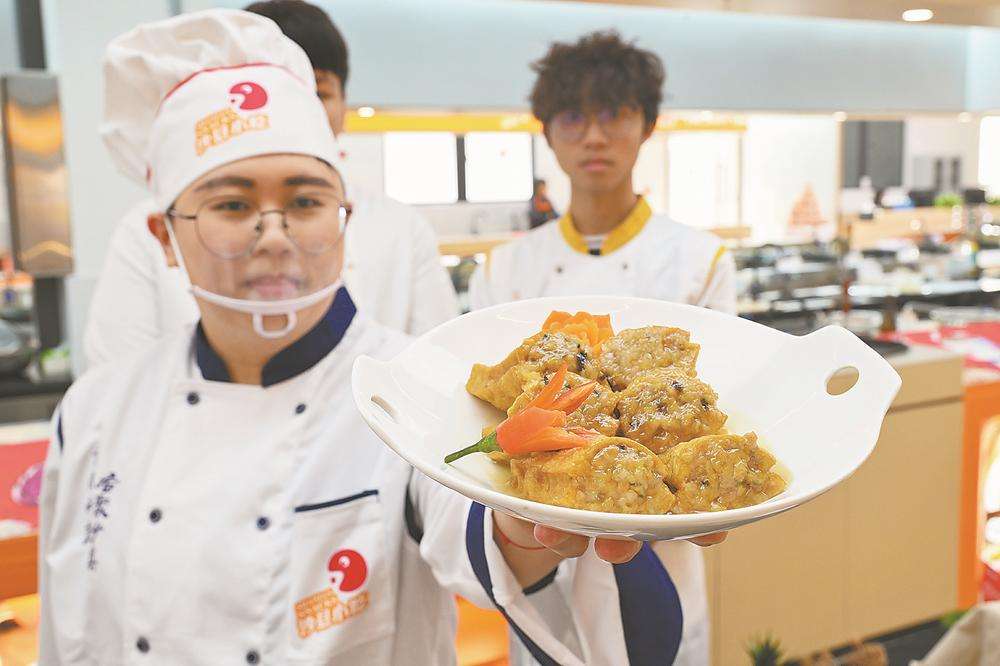 12月6日,2025“食尚两岸·香聚沙县”海峡两岸厨艺交流赛上的选手展示比赛作品。(福州《福建日报》)