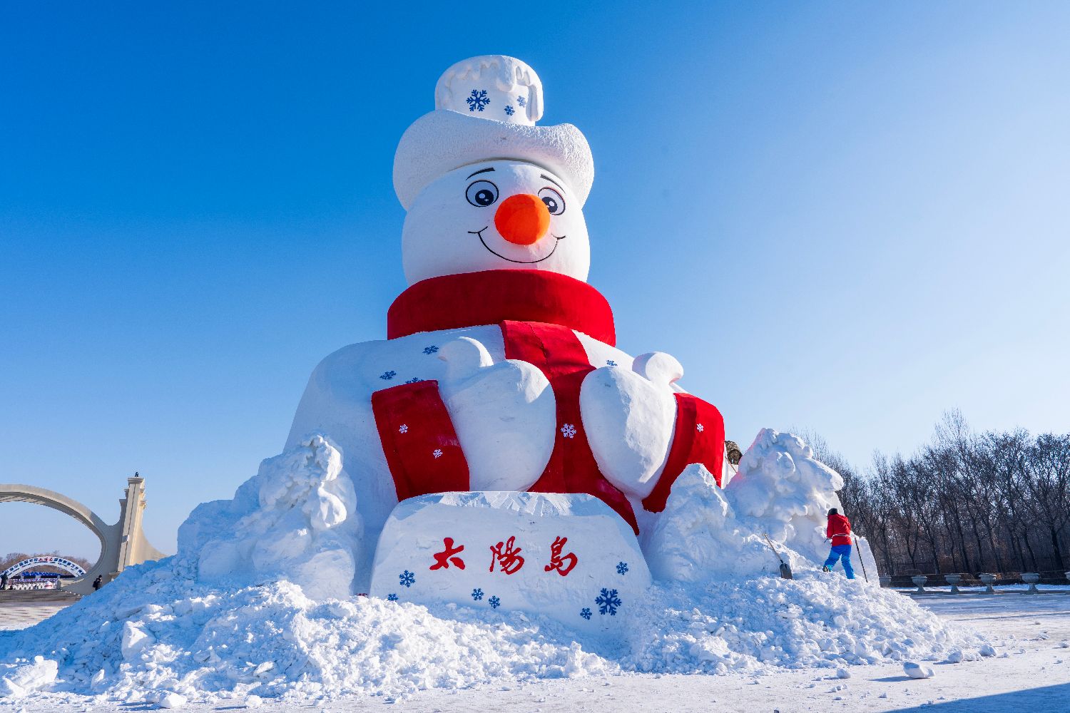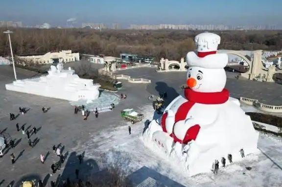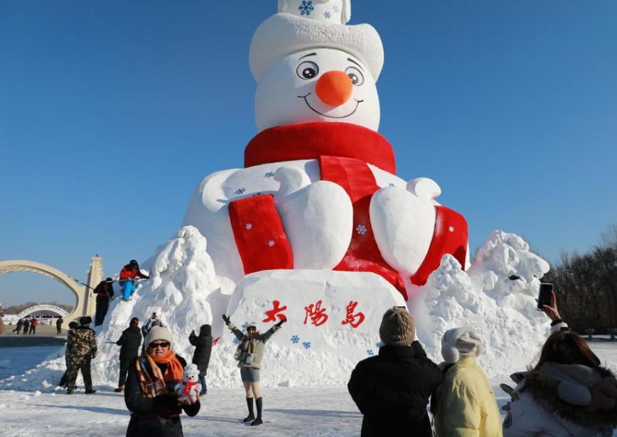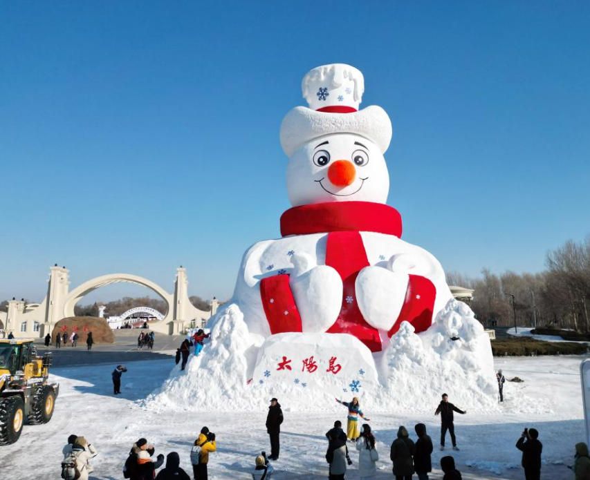 12月9日,位于哈尔滨市太阳岛正门处的第38届太阳岛雪博会标志性雪塑景观“雪人先生”完工正式亮相。(《哈尔滨日报》)