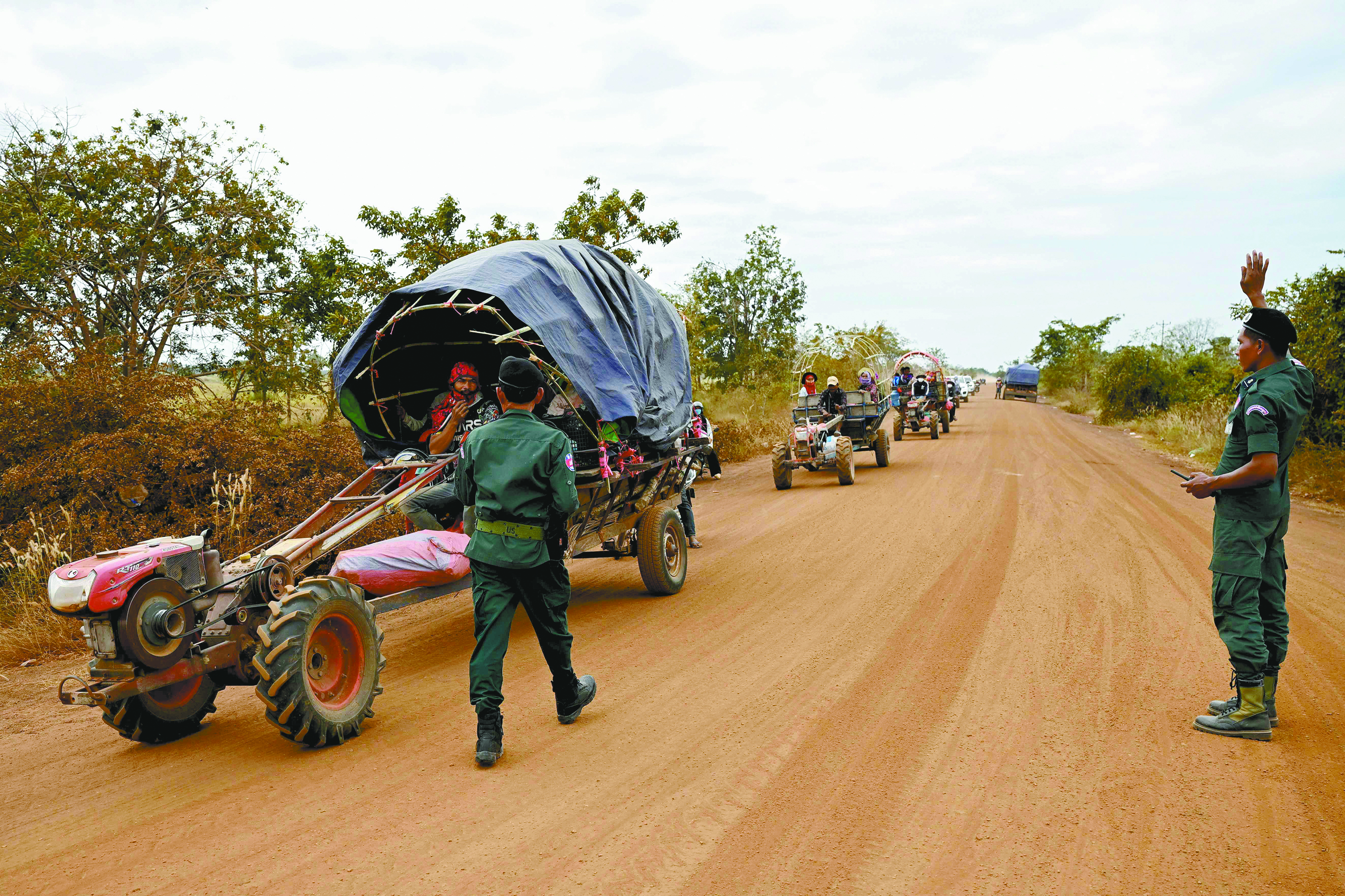 12月10日,柬埔寨与泰国边境冲突仍在持续,两国约50万民众因此逃离家园。图为柬埔寨民众逃往安全区。(视觉中国)