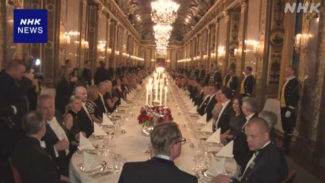 晚宴在瑞典首都斯德哥尔摩老城区的王宫举行,瑞典国王卡尔十六世·古斯塔夫、王室成员以及包括多位诺贝尔奖得主在内的约一百位宾客出席。