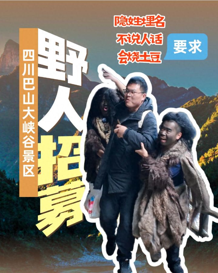 12月10日,四川达州市文化和旅游局微信公众号“达州文旅”发布信息,正在打造国家AAAAA级景区的达州市巴山大峡谷景区急招“野人”,日薪200元人民币,“要求隐姓埋名,不说人话,会烧土豆。”