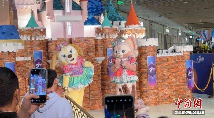 香港迪士尼乐园度假区20周年主题展览14日登陆深圳K11ECOAST海滨文化艺术区。米奇、米妮、可琦安、玲娜贝儿4位迪士尼角色身穿全新香港迪士尼20周年限定服饰现身,吸引来自香港等地的观众前来参与。