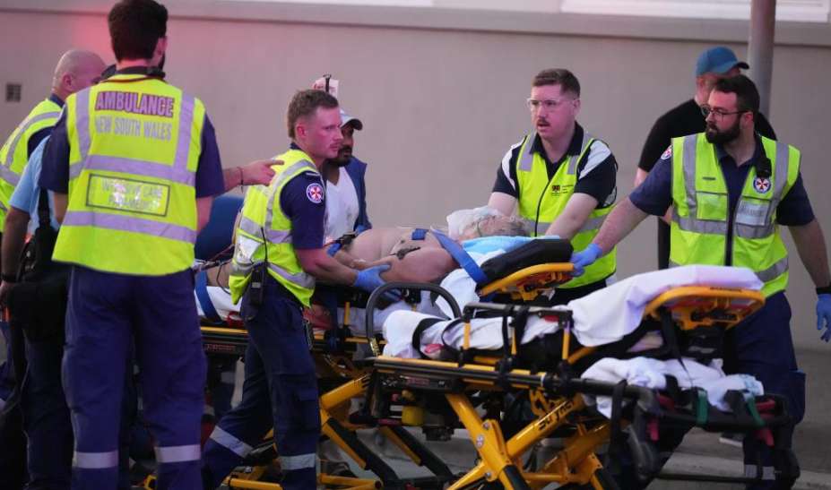 12月14日,在澳大利亚悉尼枪击事件现场,应急人员运送伤员。(图/新华社)