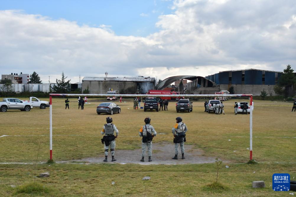 12月15日,在墨西哥中部墨西哥州托卢卡市,国民警卫队人员在事故现场警戒。新华社发(阿图罗·埃尔南德斯摄)
