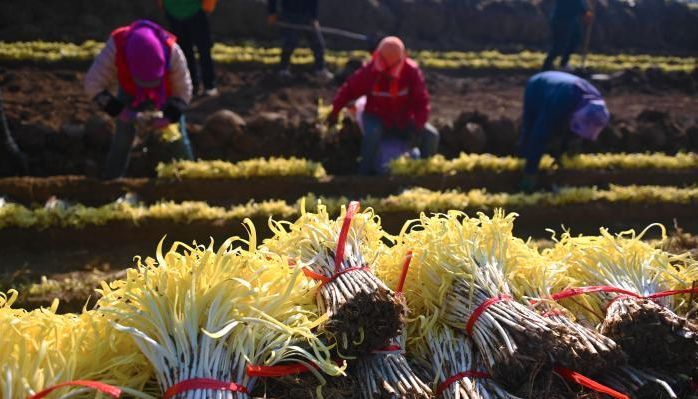 兰州韭黄开镰上市:头茬嫩“卷”掀“时令之鲜”