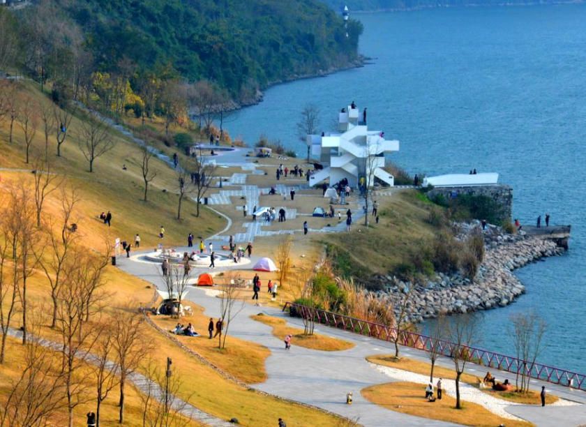 12月14日,游客在湖北省宜昌市夷陵区乐天溪镇的莲沱畔公园里欣赏长江西陵峡风景。(新华网)