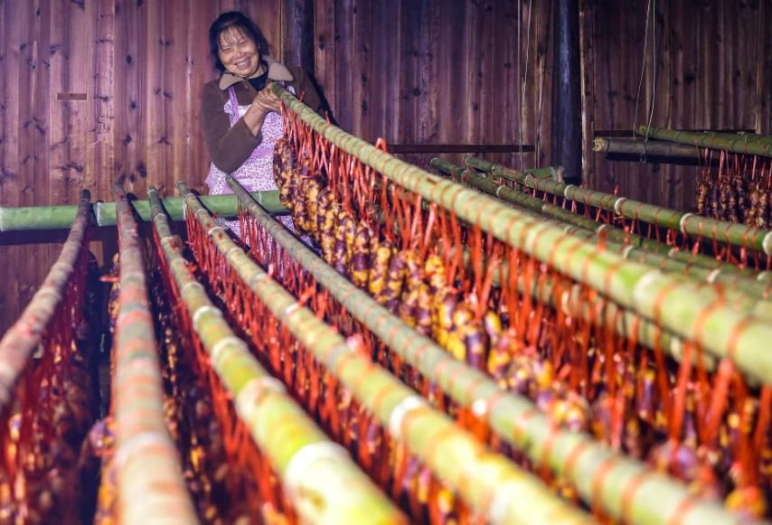 12月15日,贵州省铜仁市玉屏侗族自治县新店镇大湾村村民在熏制腊味。俗话说“小雪腌菜,大雪腌肉”,中国许多地方有初冬腌制“咸货”的习俗。(新华网)