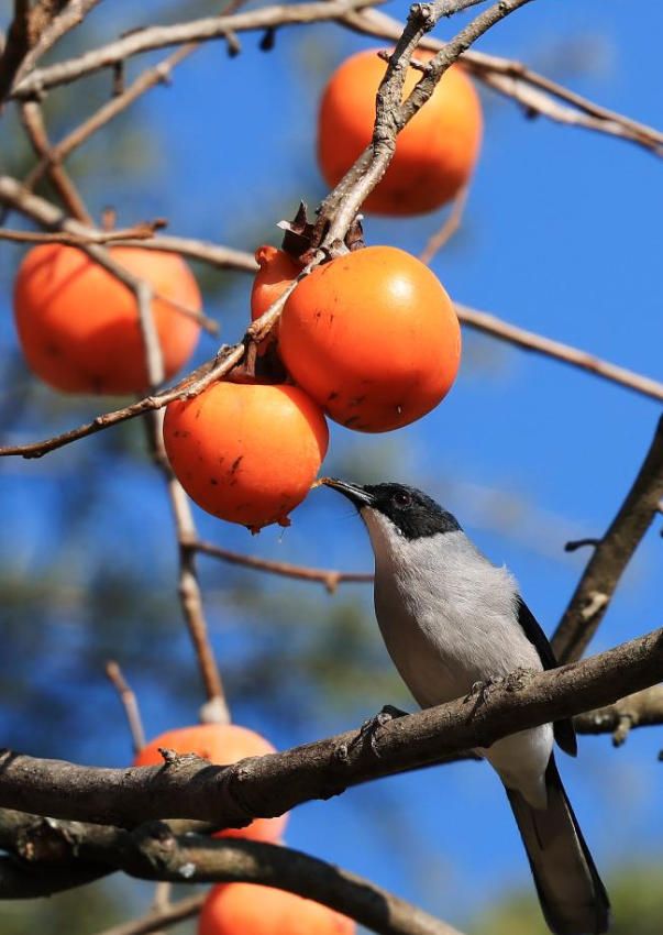 12月11日,在云南省曲靖市,鸟儿在枝头啄食柿子。(新华网)