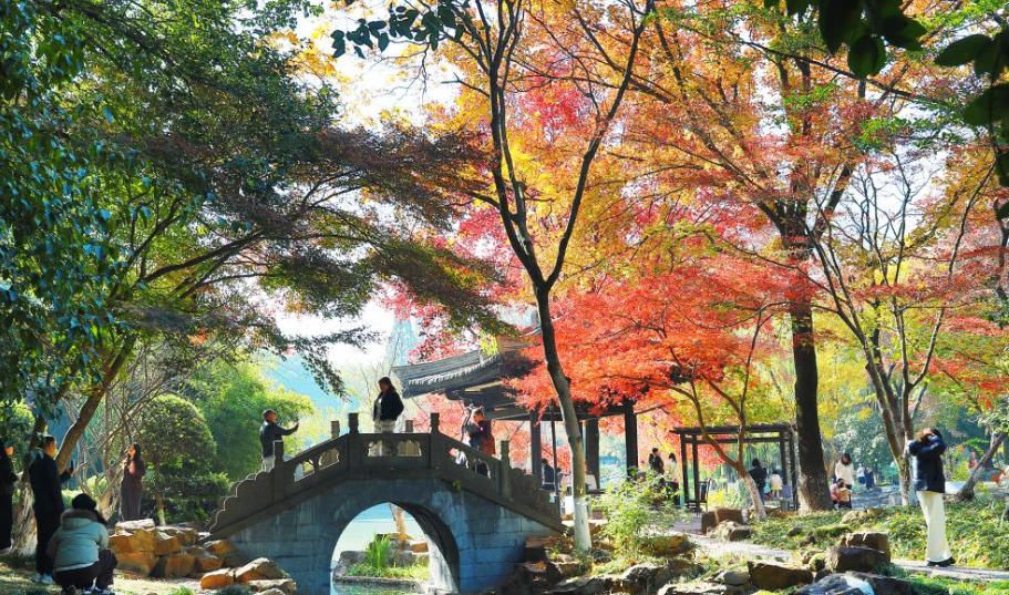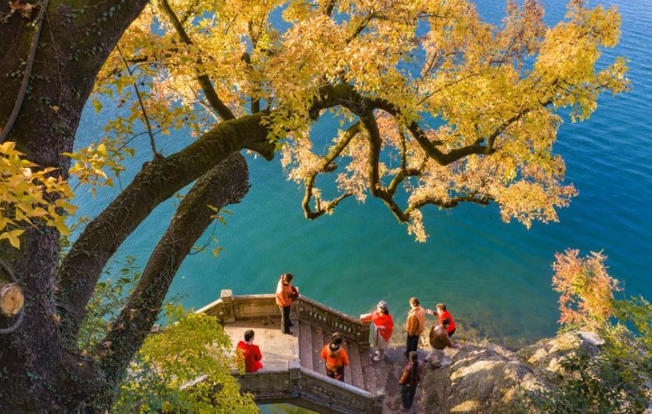 初冬时节,广西南宁花花大世界景区天蓝水碧,色彩斑斓的水杉点缀于湖光山色之间,绘就一幅独具韵味的冬日画卷,吸引众多游客前往,尽享美景。(人民网)