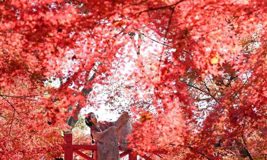 12月7日,游人在南京中山植物园观赏枫叶。(新华网)