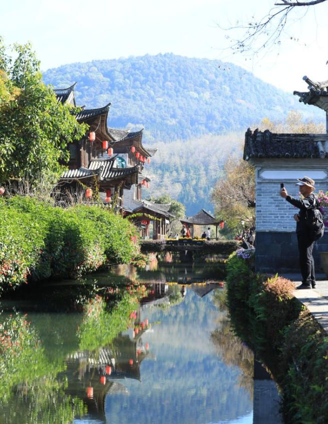 12月8日,游人在云南省腾冲市和顺镇拍照游玩。(新华网)