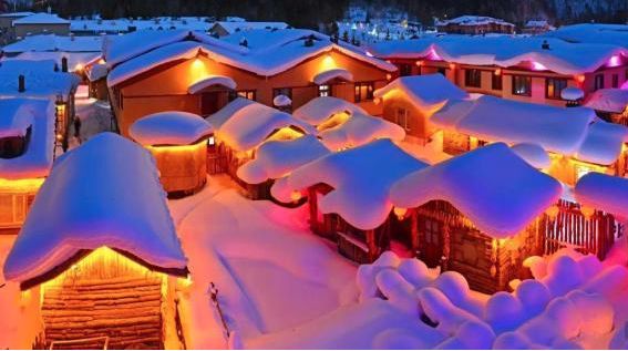 雪乡景区夜间雪景。(图/中新网)