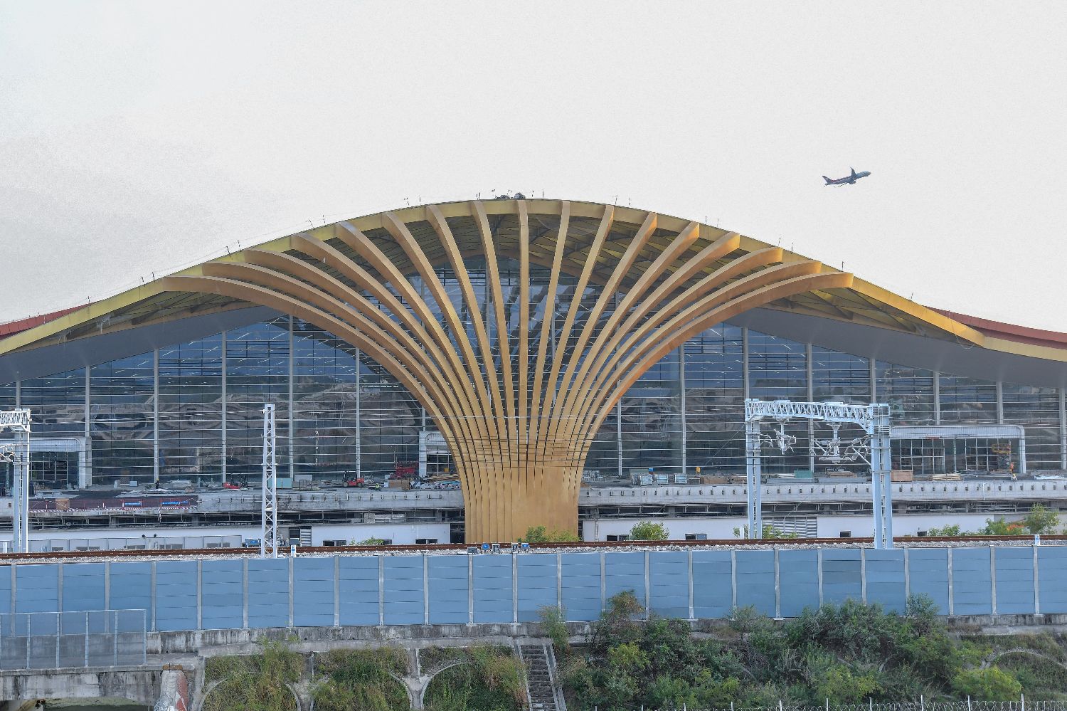 资料图为2025年11月25日,一架飞机飞过三亚凤凰国际机场三期改扩建项目T3航站楼上空。三亚凤凰国际机场三期改扩建项目T3航站楼作为海南省重大项目,设计年旅客吞吐量达1800万人次,建筑外观形似展翅凤凰,室内设计融入大海、沙滩等海洋元素,致力于打造兼具三亚特色与海南文化的空港门户新地标。(中新社)