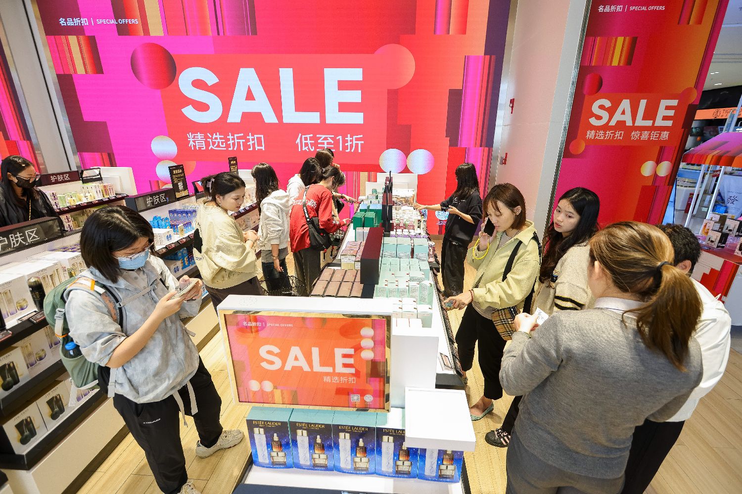 12月18日,海南自由贸易港正式启动全岛封关。资料图为2025年12月2日,顾客在cdf海口国际免税城选购商品。(中新社)