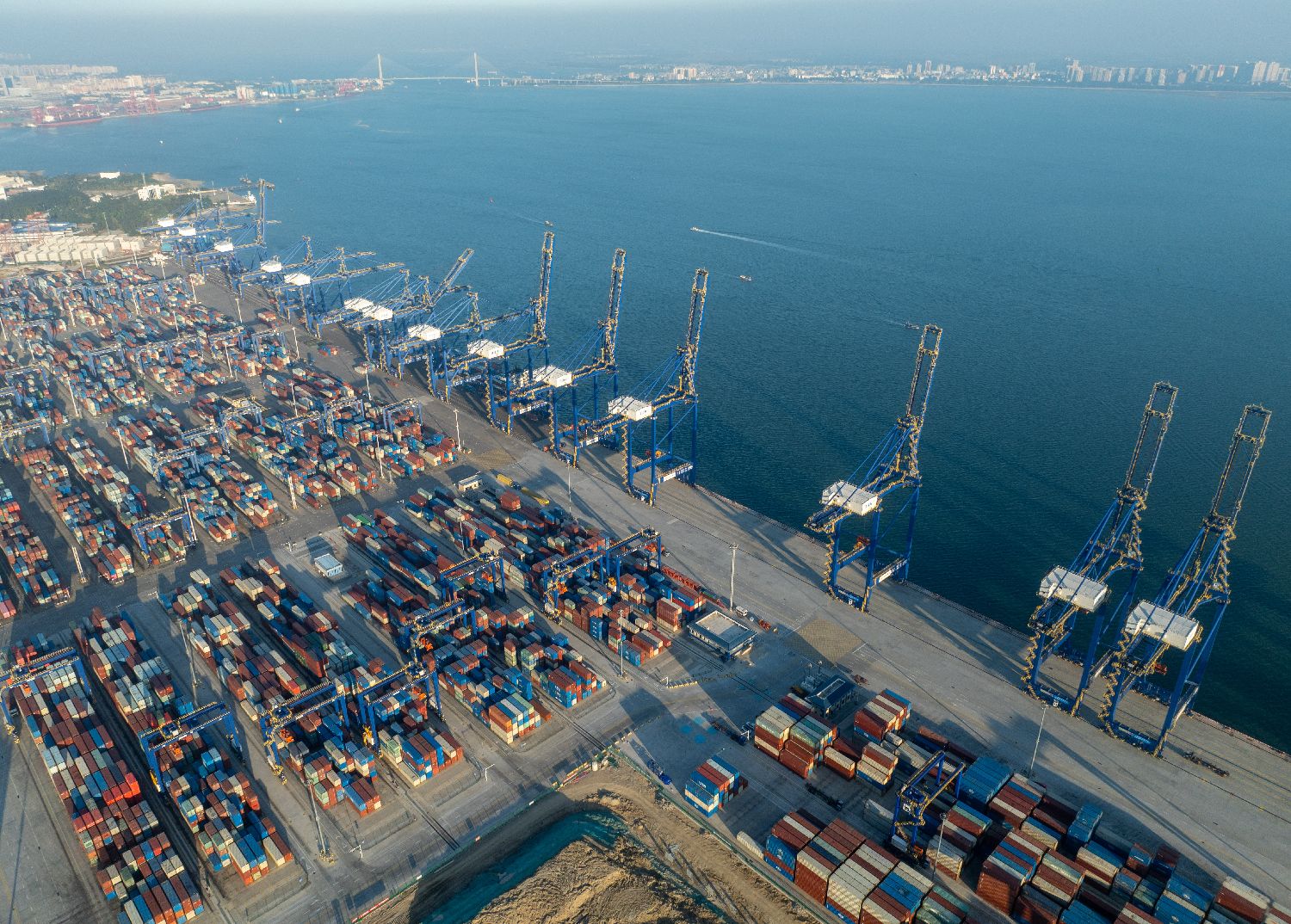 在海南洋浦经济开发区拍摄的洋浦港口岸,其既是海南自贸港8个对外开放口岸之一,又是10个“二线口岸”之一(无人机照片,11月21日摄)。(新华社)