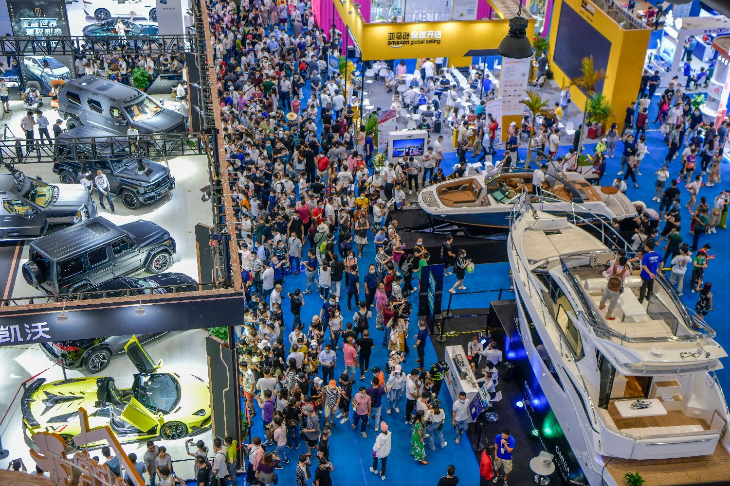 资料图为2021年5月10日,民众在海口参观首届中国国际消费品博览会的游艇、汽车展区。(中新社)