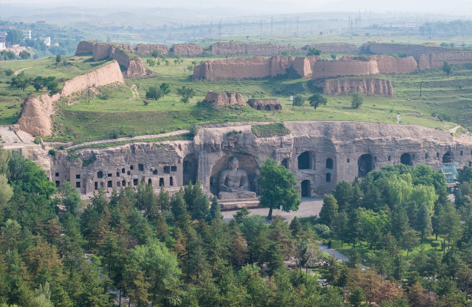 7月3日,山西大同,航拍云冈石窟。云冈石窟位于大同市城西16公里的武州山南麓,石窟东西绵延约1公里,现存主要洞窟45座,造像51000余尊,代表着五世纪世界雕刻艺术的最高水平,与敦煌莫高窟、洛阳龙门石窟并称中国三大石窟。(图/中新社)
