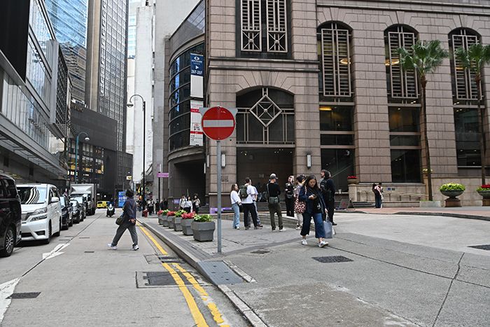 18日,香港上环一间货币兑换店被劫走约10亿日元。图为案发现场附近。(图/中新社)