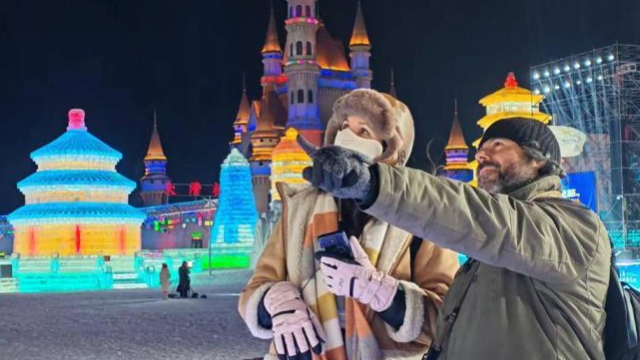 走进夜幕下的长春冰雪新天地,仿佛置身于一座水晶城,在冰雪打造的建筑群里,阿莲手持相机以第一视角为“粉丝”介绍这座新建成的冰雪乐园。在阿莲的家乡温哥华,人们喜欢去雪山上滑雪、徒步,欣赏自然冰雪景观。而在长春,她看到了规模庞大的冰雕和雪雕,工人们将冰雪变成宏伟的艺术品,令人震撼。“两座城市用各自的方式讲述‘人与冰雪’的故事,都很棒。”