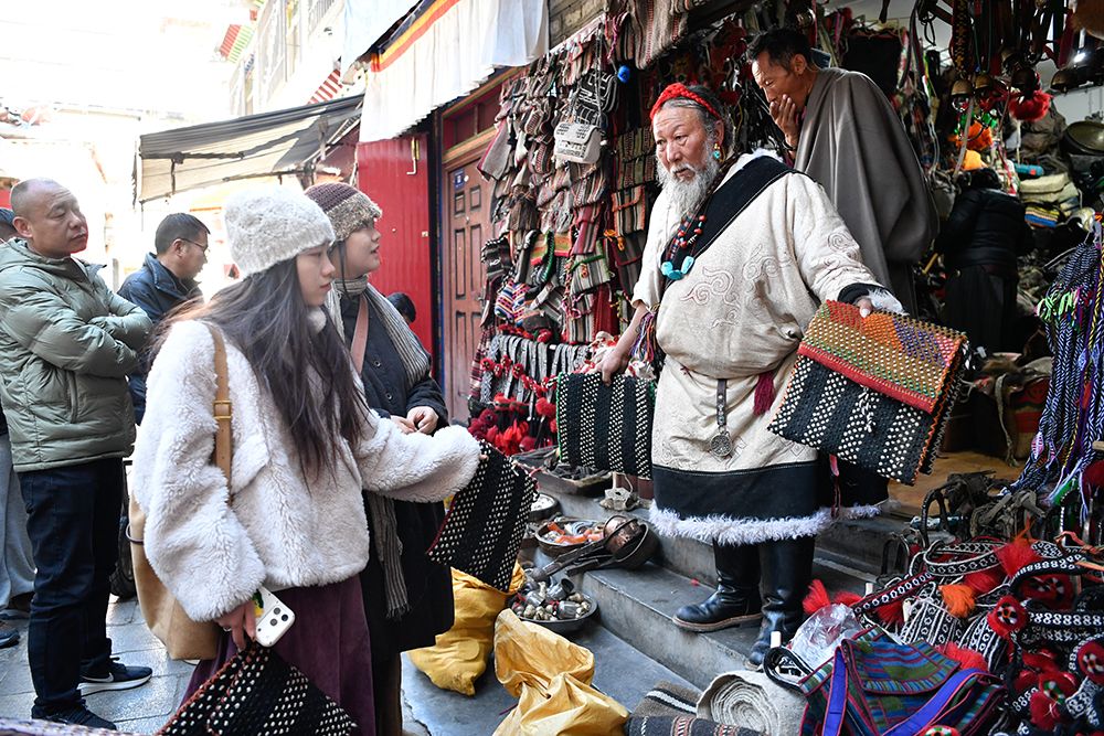 12月9日,西藏拉萨八廓街藏式老物件小店生意红火。(图/中新社)