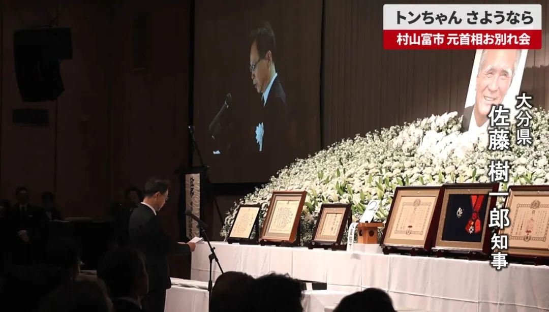 大分县知事佐藤树一郎↑讲话,深切缅怀村山富市前首相。