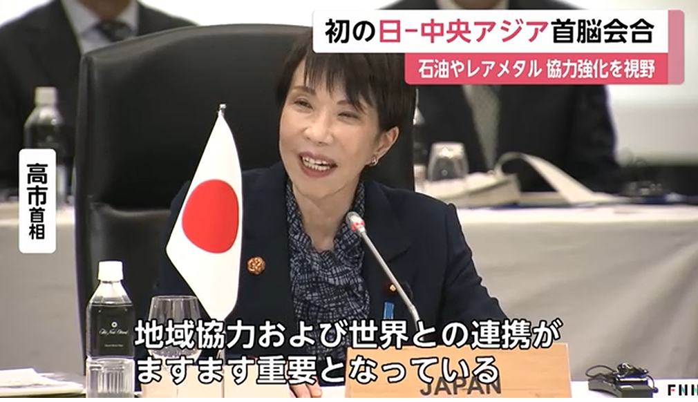 中亚地区能源和矿产资源丰富,与中国、俄罗斯联系密切。高市首相在会谈中指出,受近期国际局势变化影响,中亚周边环境正在快速演变,当前正是加强区域合作、深化与国际社会联动的关键时期。日本希望以此次首脑会谈为契机,全面强化与中亚五国的合作关系。