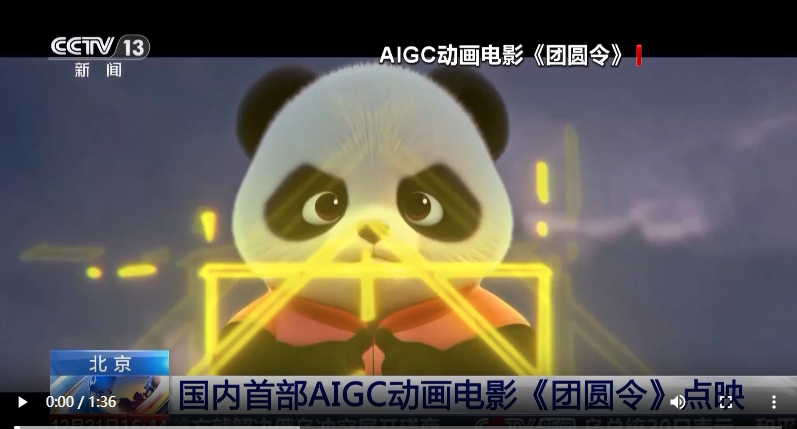 中国首部人工智能技术全流程制作(AIGC)的动画电影《团圆令》在北京举行点映活动。(图/中国央视新闻视频截图)