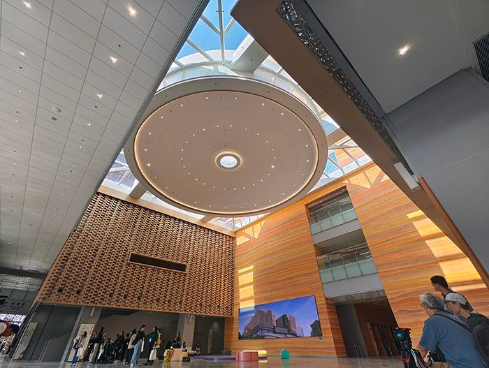 图为香港中医医院采用“天圆地方”设计的大堂。(图/中新社)