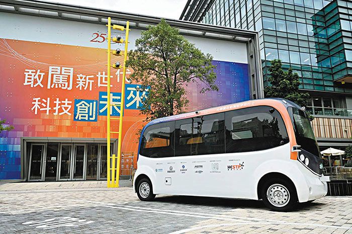 图为香港科技园公司展示的自动驾驶穿梭巴士。 (图/香港《文汇报》)