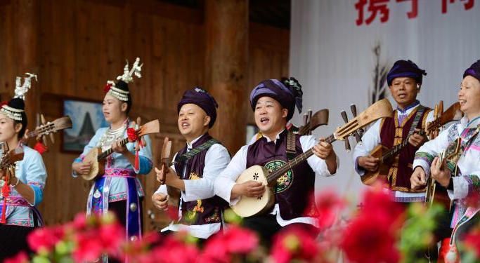 图为广西龙胜村民在侗年庆祝活动上弹唱琵琶歌。(中新网)