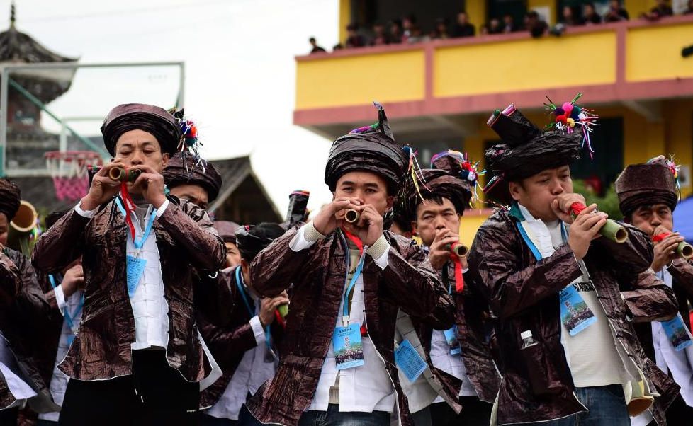 12月20日,贵州省黎平县肇兴侗寨,侗族青年为游客唱侗歌。(中新网)